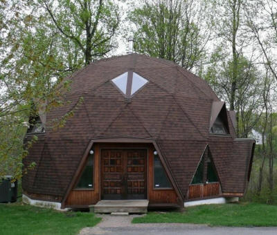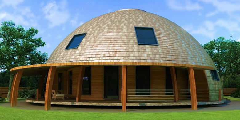 Традиции домостроения предусматривают наличие прямоугольных и квадратных конструкции. Но в природе нет углов - все животные и различные микроорганизмы не используют содержащие углов конструкции. ● Дом-сфера является альтернативой традиционным строениям. Сама архитектура такого дома оказывает положительное влияние на здоровье и сознание проживающих в нём. Материалом для строительства дома-сферы является вспененный пенополистирол - этот экологически чистый материал также используются в пищевой промышленности. Купольный дом-сфера отлично подходит для районов с неустойчивой сейсмологической обстановкой и неидеальными погодными условиями. ● В сферическом доме все основные жизненные потоки и энергетика распределяются равномерно. В таком доме очень комфортно жить. В качестве материала для внутренней отделки используется негорючий гипсокартон. ● Технология строительства дома-сферы подходит не только для возведения индивидуальных строений, но подходит для сооружения пристроек к традиционным квадратно-прямоугольным домам. Для этого можно использовать не только половину сферы, но и сектора в 1/4 и в 1/8 сферы. Примечательно, что такие пристройки стали широко использоваться при коттеджном строительстве, возведении гостиниц и даже бизнес-центров. К купольному дому можно пристроить подсобное помещение, мастерскую или гараж - таким образом можно получить целый архитектурного ансамбля. Высота пиковой точки купола может меняться путём изменения высоты боковой стены.