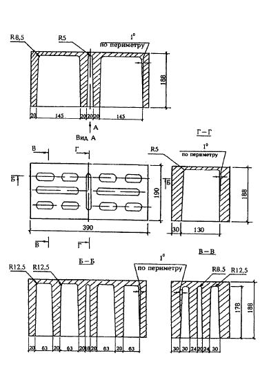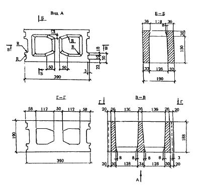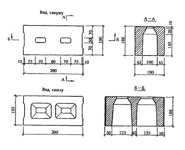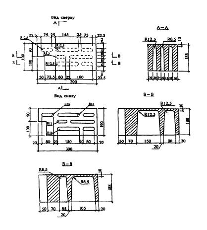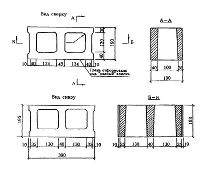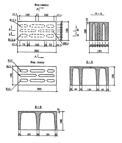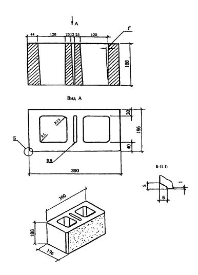 Приложение Б. Форма и размеры бетонных стеновых камней и размеры пустот *
