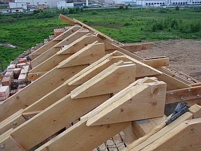 ● Во время работ по реконструкции крыши зачастую необходимо сделать более крутой кровельный скат. При этом не обязательно полностью менять стропильную систему, а надо смонтировать новые стропила, скрепив их со старыми с помощью перекрёстной дощато-гвоздевой стенки. Построенная таким способом ферма будет иметь заданный угол и обеспечит увеличенную жёсткость всей конструкции. К недостаткам этого способа усиления относится то, что при этом не удастся увеличить пространство чердачного помещения или мансарды.